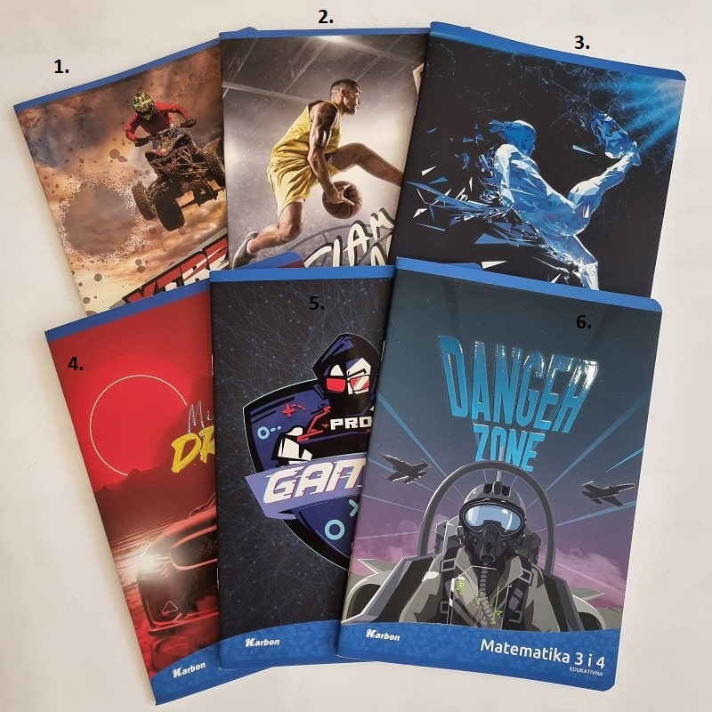 Motivirajuće naslovnice s modernim ilustracijama poput sporta, gaminga, avanture i vozila dodatno će potaknuti djecu na rad i izražavanje kroz pisanje.