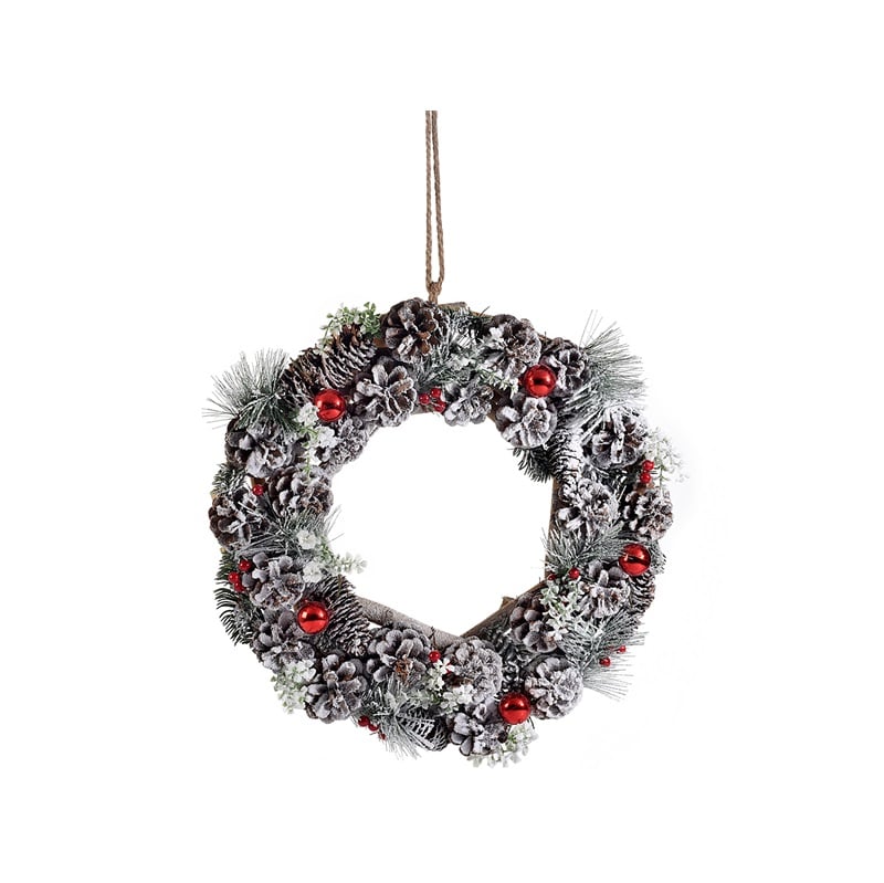 Božićni vjenčić za vrata s češerima i kuglicama 40 cm