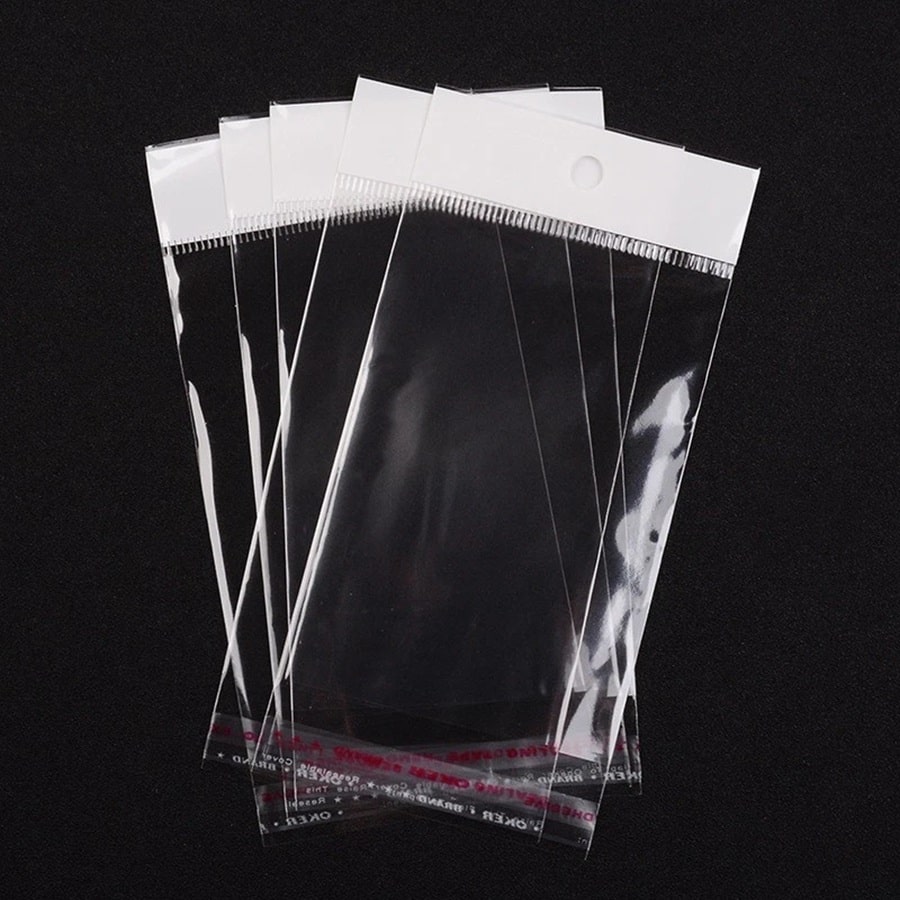 Celofanske vrećice samoljepljive sa rupom 100 komada, prozirne, sjajne, vodootporne – savršene za dekorativno pakiranje nakita i rukotvorina. Dostupno u više dimenzija.