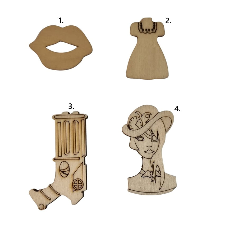 Drveni motivi u dekorativnim oblicima savršen su dodatak za razne kreativne i hobi projekte. Izrađeni od prirodnog drveta, ovi mali motivi dolaze u zanimljivim dizajnima poput usana, haljine, čizme i stiliziranog ženskog lika, što ih čini idealnima za ukrašavanje, personalizaciju i izradu unikatnih dekoracija.