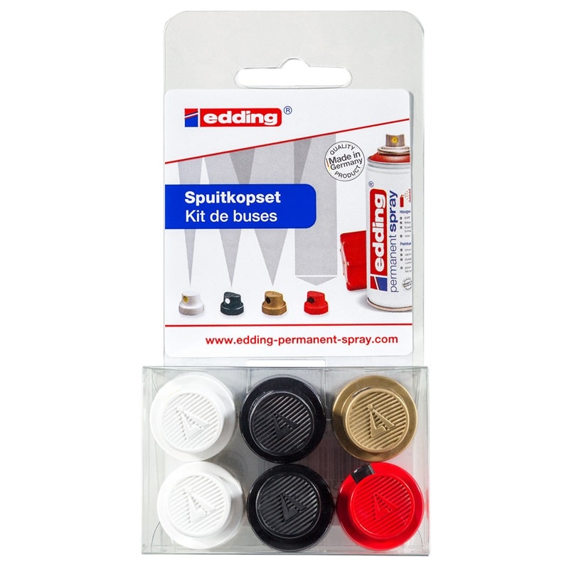 Edding mlaznice za sprej u pakiranju od 6 komada. Set zamjenskih mlaznica za Edding sprejeve – omogućuju precizno raspršivanje i različite vizualne efekte. Idealno za kreativne projekte i profesionalnu upotrebu.