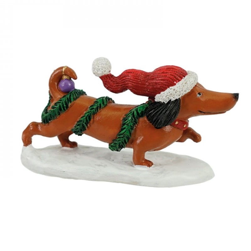 Figurica pas s kapicom i ukrasima simpatičan je dodatak vašim zimskim dekoracijama. Veličina: 8×2,5×4,5 cm. Pakiranje: 1 komad