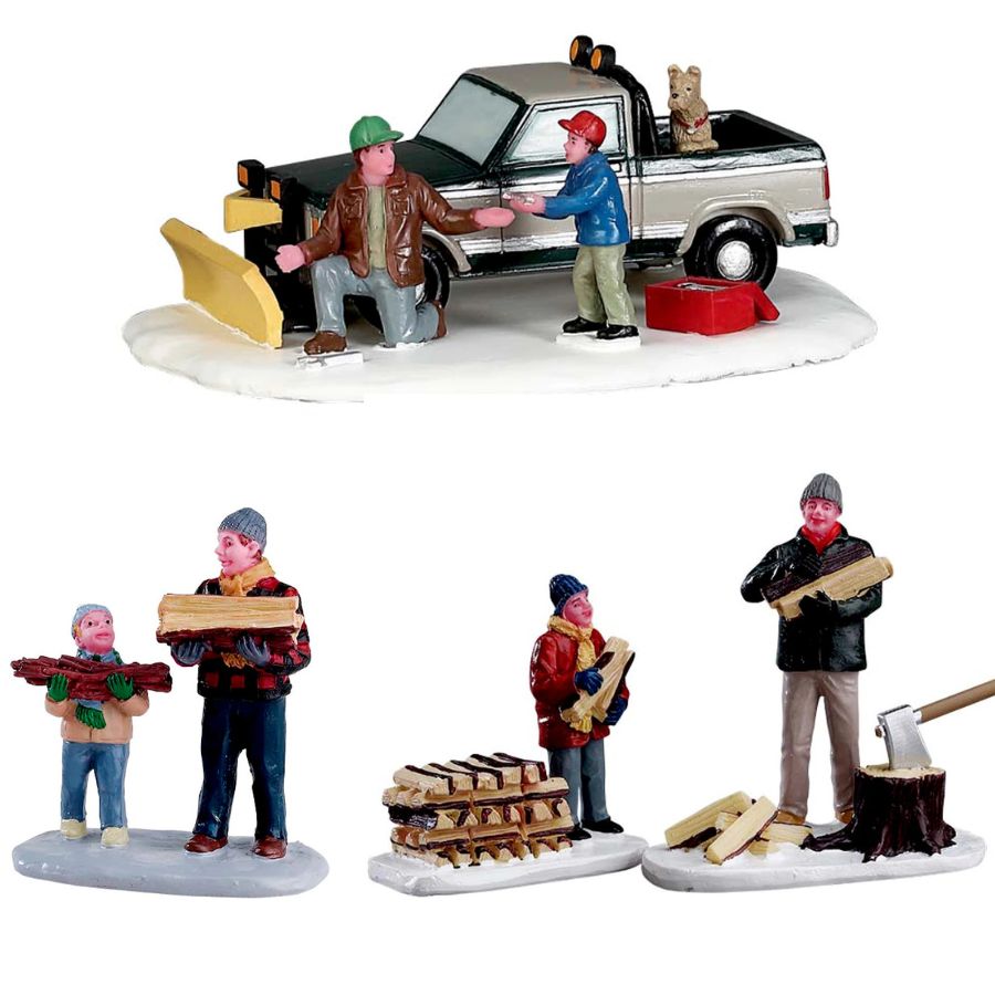 Figurica za božićno selo, Lemax – prikazuju tople, svakodnevne trenutke iz života u snježnom selu – pripreme za zimu, zajednički rad i obiteljsku povezanost. Savršene su za dodavanje realističnih detalja u vaše božićno selo i stvaranje priče koja grije srce.