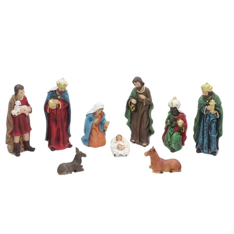 Ovaj set od 9 figurica savršen je dodatak vašim božićnim jaslicama i blagdanskom uređenju doma. Set uključuje Svetu obitelj, tri mudraca, pastira, vola i magarca, čime u potpunosti dočarava tradicionalnu božićnu priču. Figurice su izrađene od kvalitetnog materijala i pažljivo oblikovane kako bi stvorile toplu i svečanu atmosferu. Zahvaljujući svojoj veličini od 12 cm, idealne su za postavljanje na police, ispod božićnog drvca ili unutar većih jaslica.