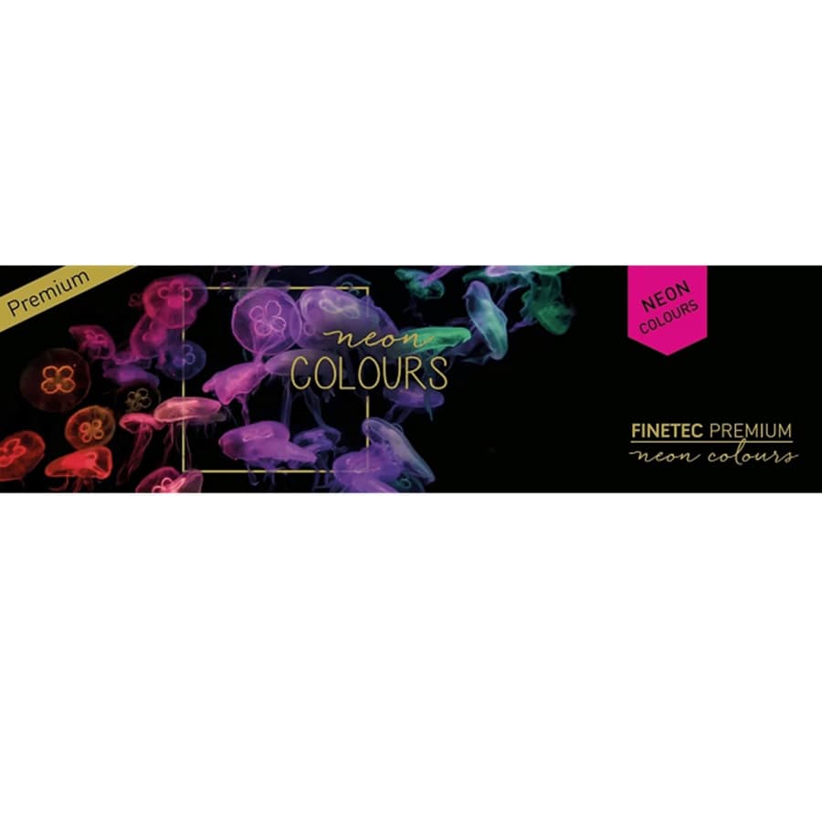 Kolekcija akvarela FINETEC Premium sastoji se od raznih sedefastih, prelijevajućih, metalik, flip-flop i neonskih boja, a sve su napravljene s pigmentima vrhunske kvalitete za još intenzivniji sjaj i zapanjujuće sjajne boje. Ovih 6 fluorescentnih neonskih boja izrađene su od najfinijih fluorescentnih pigmenata i mogu se osvijetliti UV svjetlom (žuta čak svijetli u mraku!).