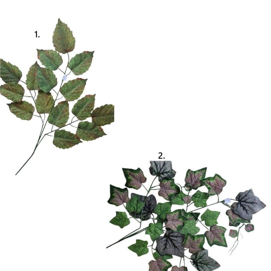 Grana umjetnog lišća cca 60 cm, dostupna u dvije varijante listova: veliki (14 cm) ili manji (6–11 cm). Pakiranje 1 komad.