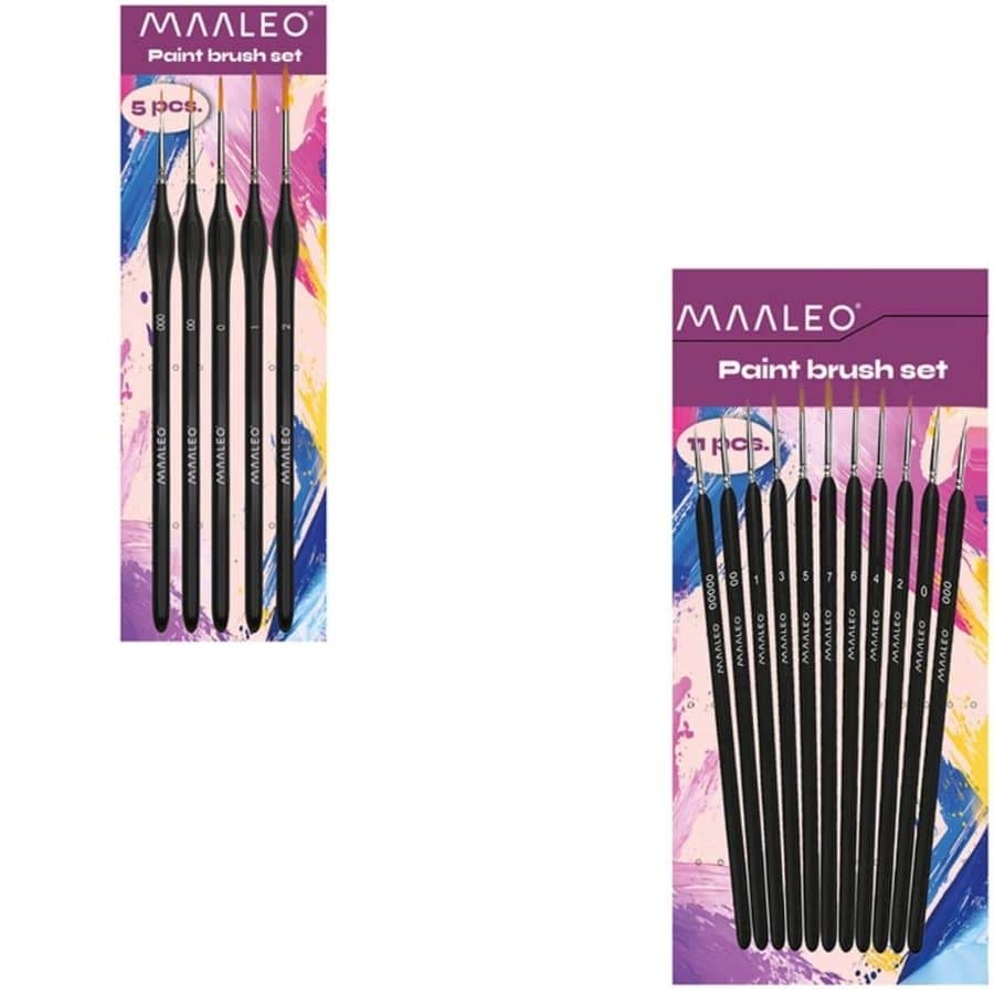 Kistovi za slikanje u setu Maaleo s drvenim ručkama i najlonskim čekinjama za precizno i ugodno slikanje s akrilnim, akvarelnim ili gvaš bojama.