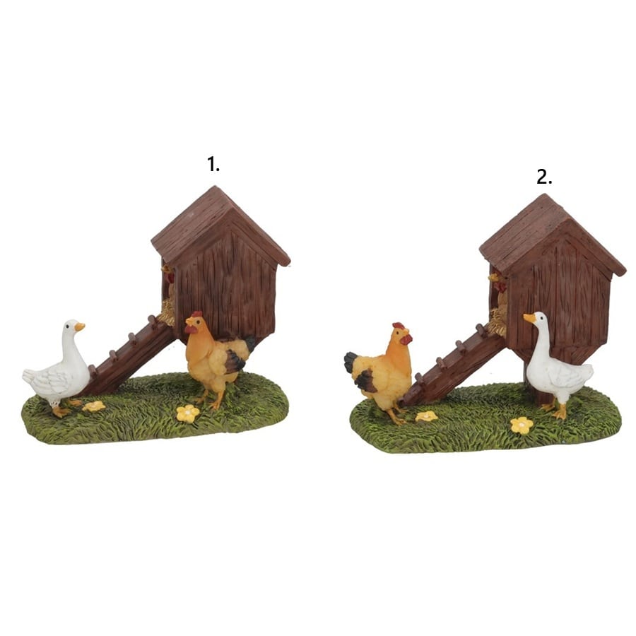 Dodajte autentičan seoski detalj svom božićnom selu s ovim kokošinjcem i figuricama životinja. Svaka figura prikazuje realističan kokošinjac s patkom i kokošima u prirodnom okruženju, pružajući vašoj maketi toplinu i živost tradicionalnog seoskog života. Figurice su izrađene od kvalitetne smole i prodaju se pojedinačno u dvije verzije.