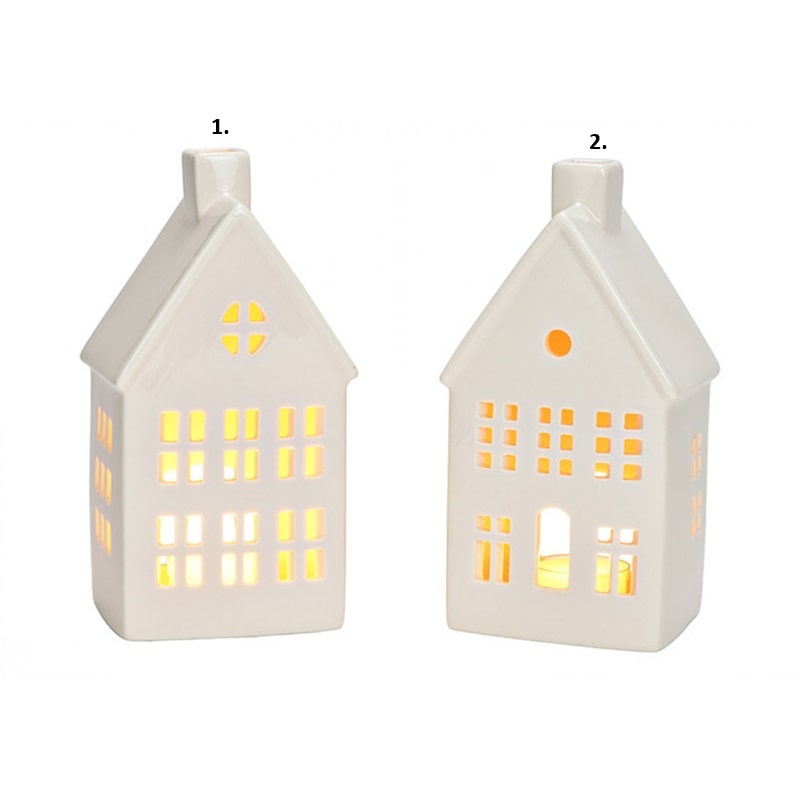 Kućica porculanska bijela 10x19x7 cm za svjećice, savršena za stvaranje tople i opuštajuće atmosfere u vašem domu. Pakiranje 1 komad