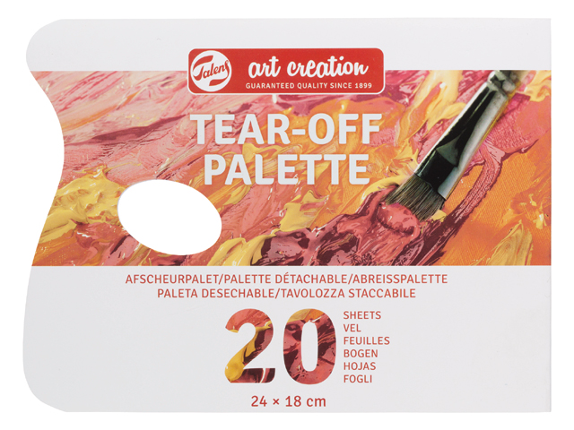Paleta za slikanje u listovima dolazi u bloku koji sadrži 20 listova 24×18 cm specijalnog papirnatog materijala koji ne propušta boju i idealan je za miješanje akrilnih, uljanih i drugih slikarskih boja. Nakon upotrebe list jednostavno otkinete i bacite – bez pranja i čišćenja.