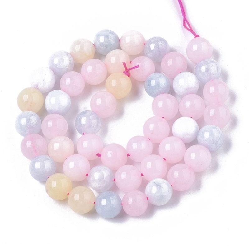Ove perlice od prirodnog poludragog kamena kvarca, u imitaciji morganitne boje, savršene su za izradu nakita i drugih kreativnih projekata. Okruglog su oblika i dolaze u mješovitim bojama, dimenzija 8,5×8 mm, s rupom promjera 1 mm. Na svakoj niti nalazi se oko 47 perlica, a dužina niti iznosi 15,16 inča (38,5 cm). Kvarc je poznat po svojoj sposobnosti pojačavanja energije drugih kristala te je izvrstan alat za duhovne prakse. Vjeruje se da može pomoći u jačanju snage vaših namjera i afirmacija te vam omogućiti veću jasnoću i fokus u postizanju ciljeva.