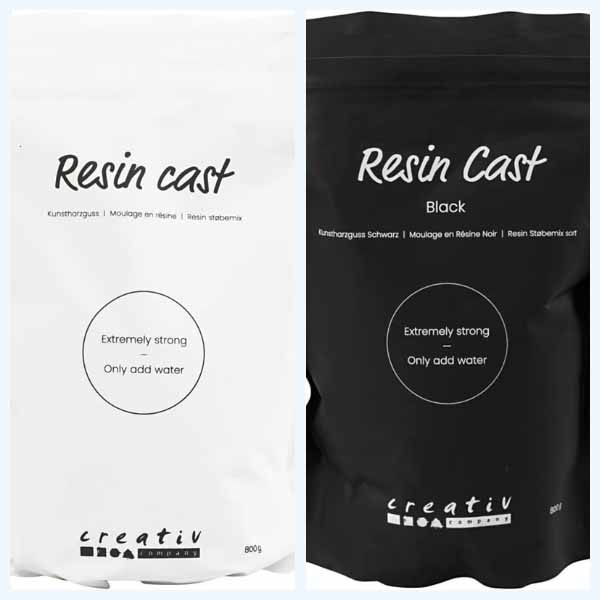 Resin Cast 800 g Creative Company je materijal za lijevanje u obliku praha koji dolazi u crnoj ili bijeloj boji. Pomiješajte s vodom i stvrdnjavajte na sobnoj temperaturi.