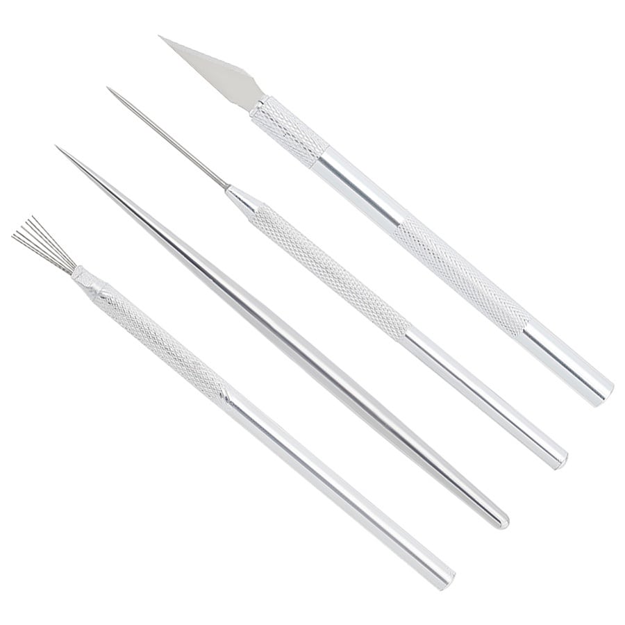 Set alata za modeliranje i oblikovanje – set od 4 alata za modeliranje gline i polimerne gline, izrađen od nehrđajućeg čelika. Savršen za precizan rad, rezanje, teksture i detalje.