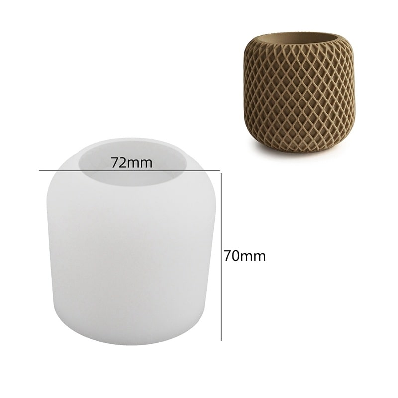 Silikonski kalup posudica za svijeću 72×70 mm, savršen za izradu unikatnih dekorativnih predmeta od smole, gipsa i sličnih materijala. Pakiranje: 1 komad.
