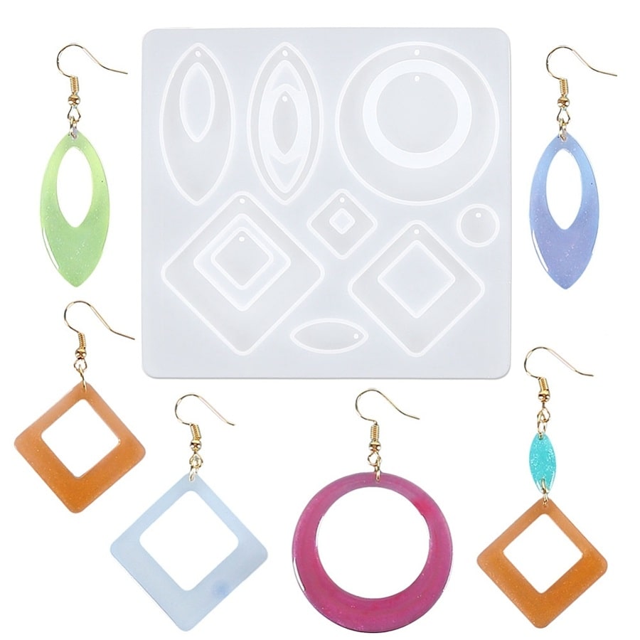Ovaj silikonski kalup za izradu naušnica i privjesaka idealan je za rad s UV smolom i epoxy smolom. Omogućuje izradu različitih oblika poput romba, prstena i horse eye oblika u jednom kalupu. Izrađen je od silikona prehrambene kvalitete, fleksibilan je, neljepljiv i lako se čisti.