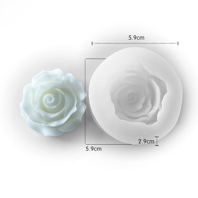 Silikonski kalup za svijeću ruža 59x59x29 mm, omogućuje izradu personaliziranih mirisnih svijeća uz dodavanje boja i omiljenih mirisa. Pakiranje: 1 komad.