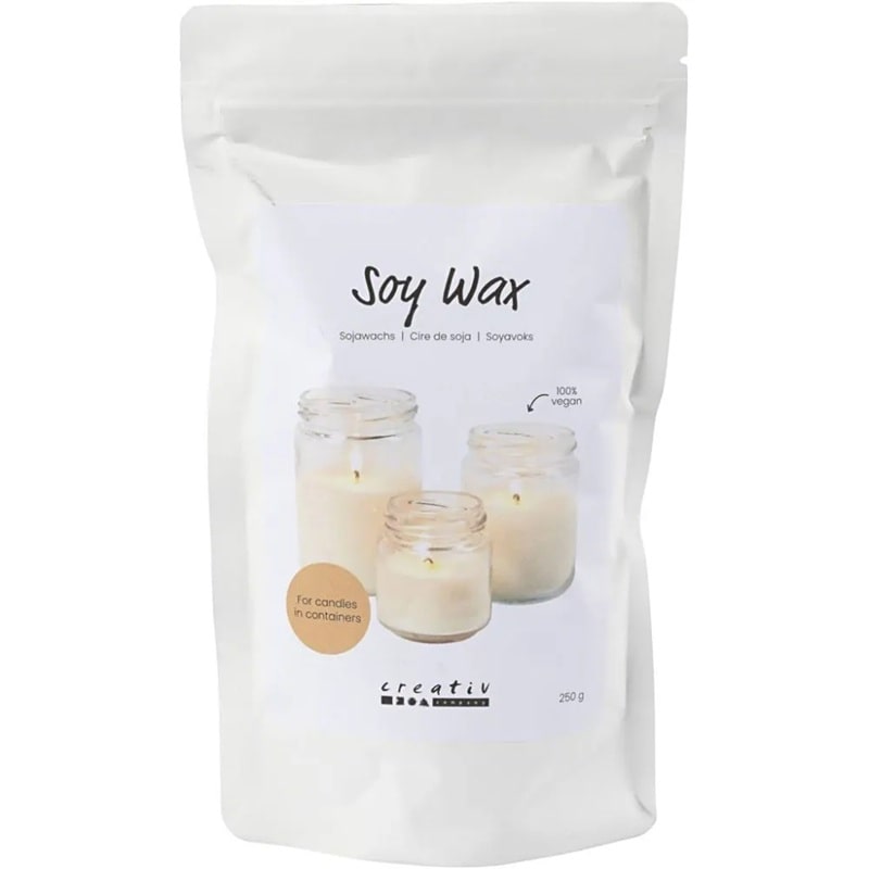Sojin vosak za svijeće u posudama Creativ Company, krem boje, savršen je izbor za ljubitelje DIY svijeća. Ovaj 100% veganski vosak u listićima omogućuje jednostavno i precizno lijevanje svijeća u staklenke. Sa smanjenim stvaranjem čađe (80–90% manje od tradicionalnih svijeća), pruža čisto gorenje i dugotrajan ugođaj. Idealna je temperatura topljenja između 50–55 °C, a vrijeme sušenja je 4 sata (potpuno sušenje preporučuje se nakon 48 sati).