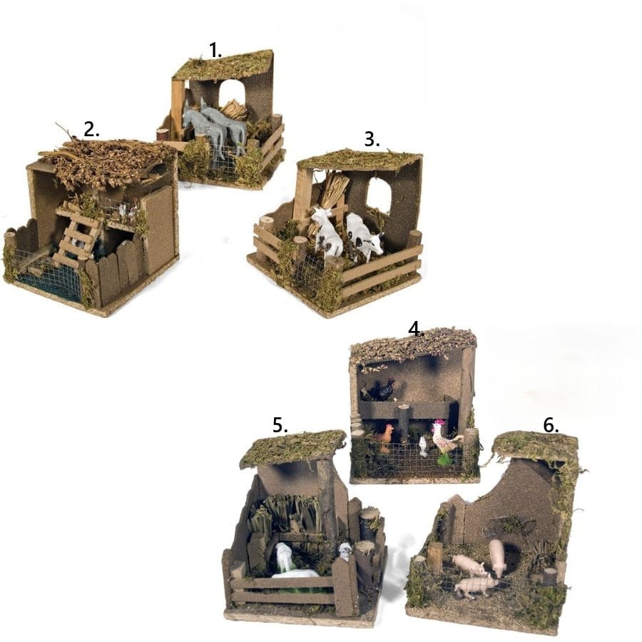 Štalica sa životinjama 14x15x14 cm idealna za božićna sela i jaslice. Prodaju se pojedinačno. Pakiranje: 1 komad