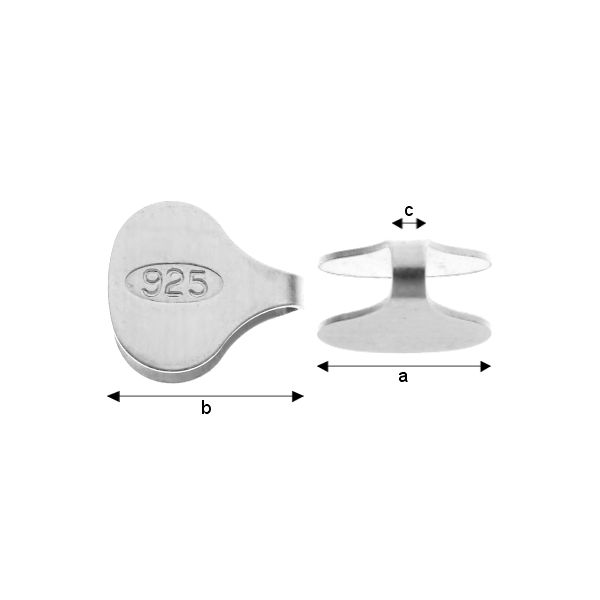 Žabo od srebra .925, veličina: a=7,80 mm; b=9,00 mm; c=1,50 mm. Pakiranje: 1 komad